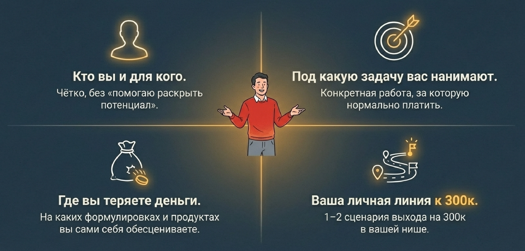 Я хочу понимать, кто я, для кого, за что мне платят и как выйти на свои 300К системно, а не рывками».